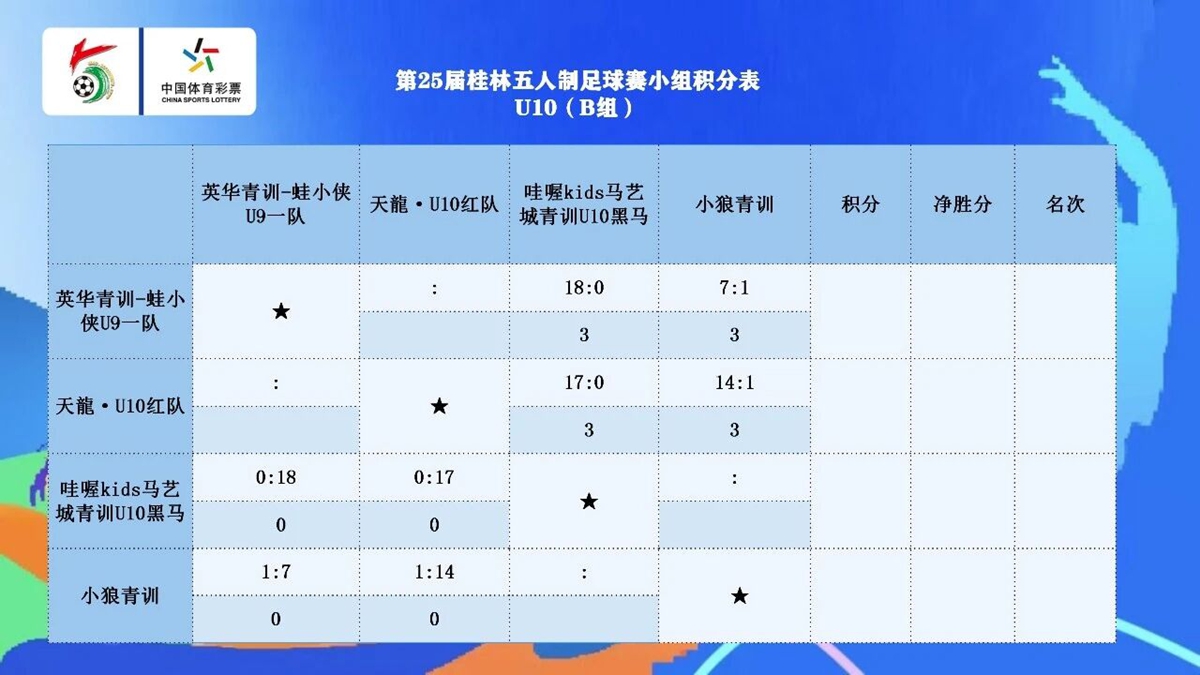 哇喔 kids 马艺城青训 U10 黑马 0:18 英华青训-蛙小侠 U9 一队