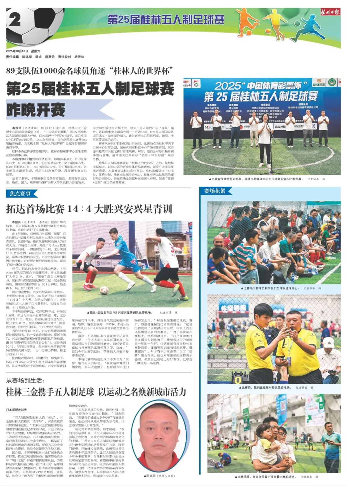 “五人制足球是桂林人的‘老友’,三金是桂林人信赖的‘老字号’,两者承载着共同的城市记忆。”桂林三金营销总部总经理阳忠阳在接受记者采访时说,三金以药品守护大众健康,足球用运动激活城市活力,二者理念天然契合。五人制足球赛与桂林三金已携手已走过二十余个春秋,我们一起见证了桂林足球运动的蓬勃发展,更成为我们企业践行社会责任、推动全民健身的生动实践。