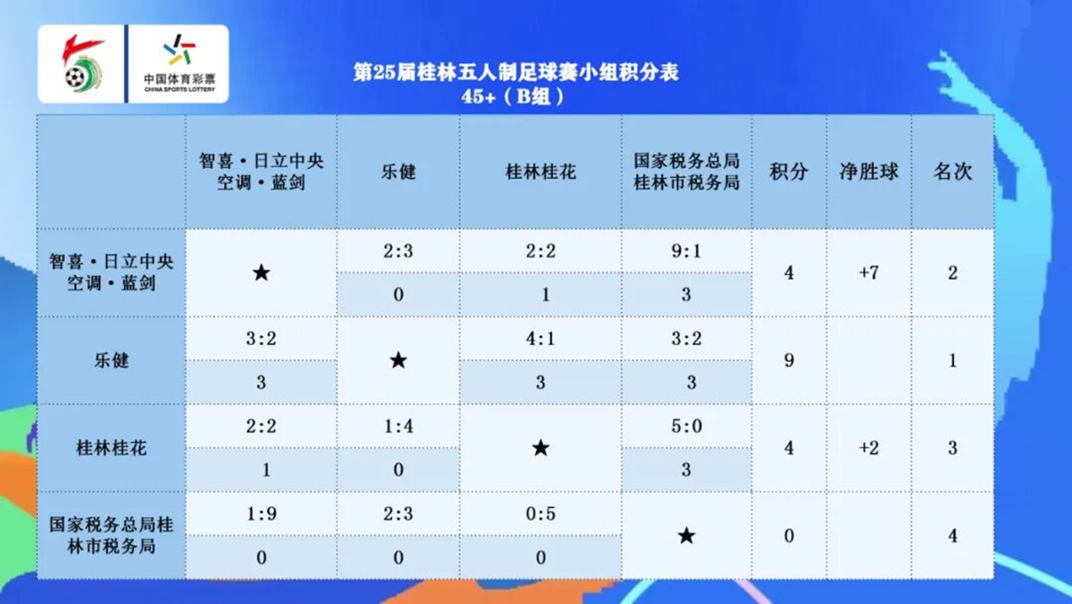 最后进行的是45+组的四分之一决赛。最终,子兴教育!桂教联队、乐 健、智喜·日立中央空调·蓝剑和北京国金4支队伍挺进半决赛。
