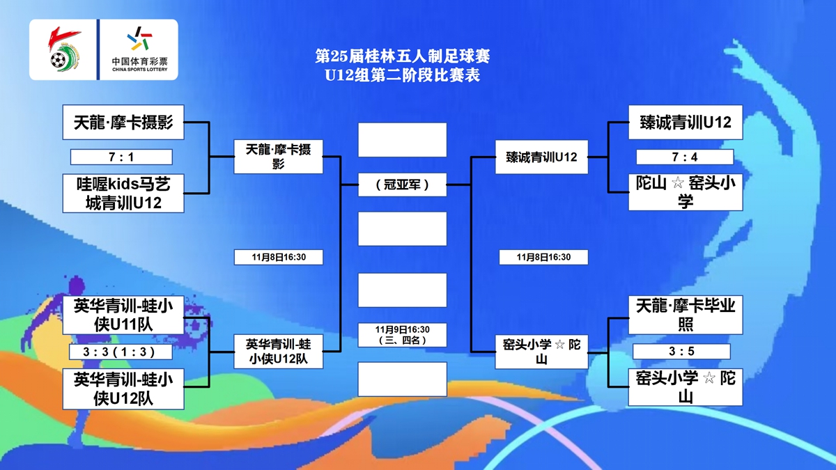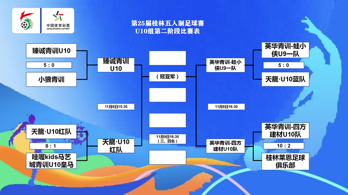 11月3日,桂林五人制公开组进入到激烈的半决赛和五六名次赛阶段。而40+和45+则进行到了最终的决赛以及三四名决赛。